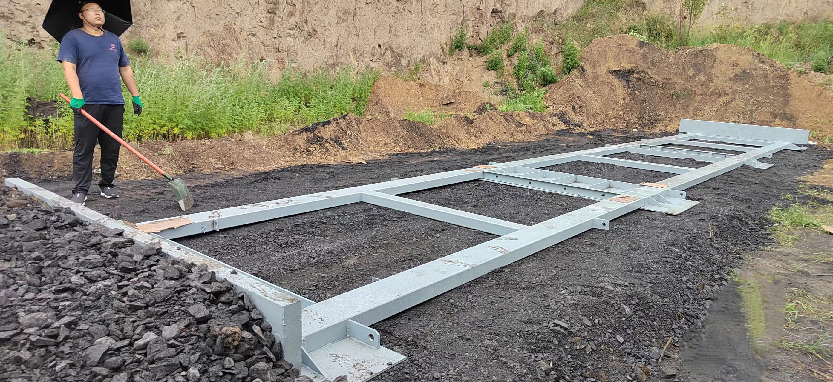 山西朔州客戶,3*16米100噸地磅,加鋼構(gòu)基礎,冒雨安裝完畢。